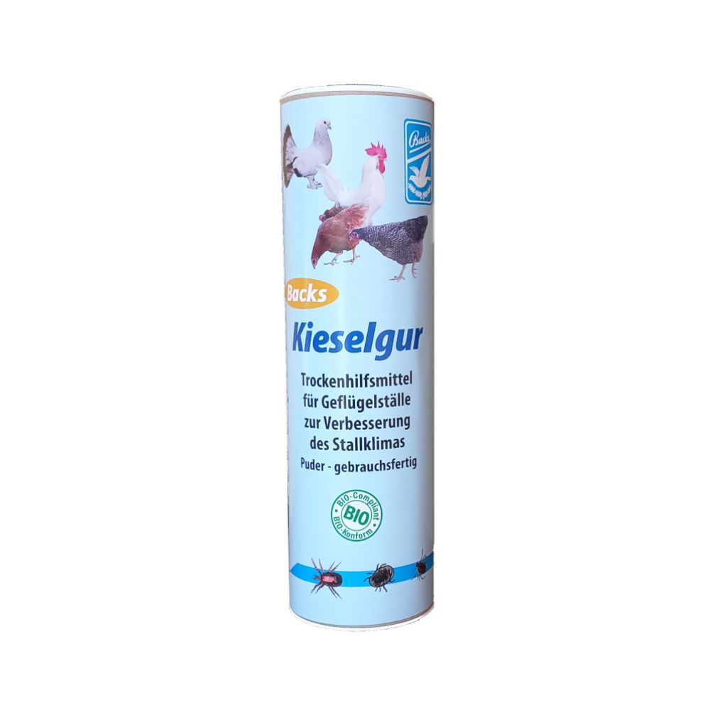 Backs Kieselgur ist ein wirksames biologisches Bekämpfungsmittel gegen die rote Vogelmilbe und andere kriechende Insekten. Kieselgur wirkt hervorragend gegen kriechendes Ungeziefer, Milben, Tabakkäfer, Mehlkäferarten, Reiskäfer, Mehlwürmer, Getreidemilben, Getreidekäfer, Getreideplattkäfer. Das feine Pulver aus fossilem Plankton wirkt auch bei hoher Luftfeuchtigkeit zuverlässig. Durch unmittelbaren Kontakt mit Backs Kieselgur wird die schützende Wachsschicht der Milben zerstört. Somit werden die Schädlinge sofort immobilisiert und trocknen aus. Durch die biologische Struktur ist eine Resistenzbildung nicht möglich.