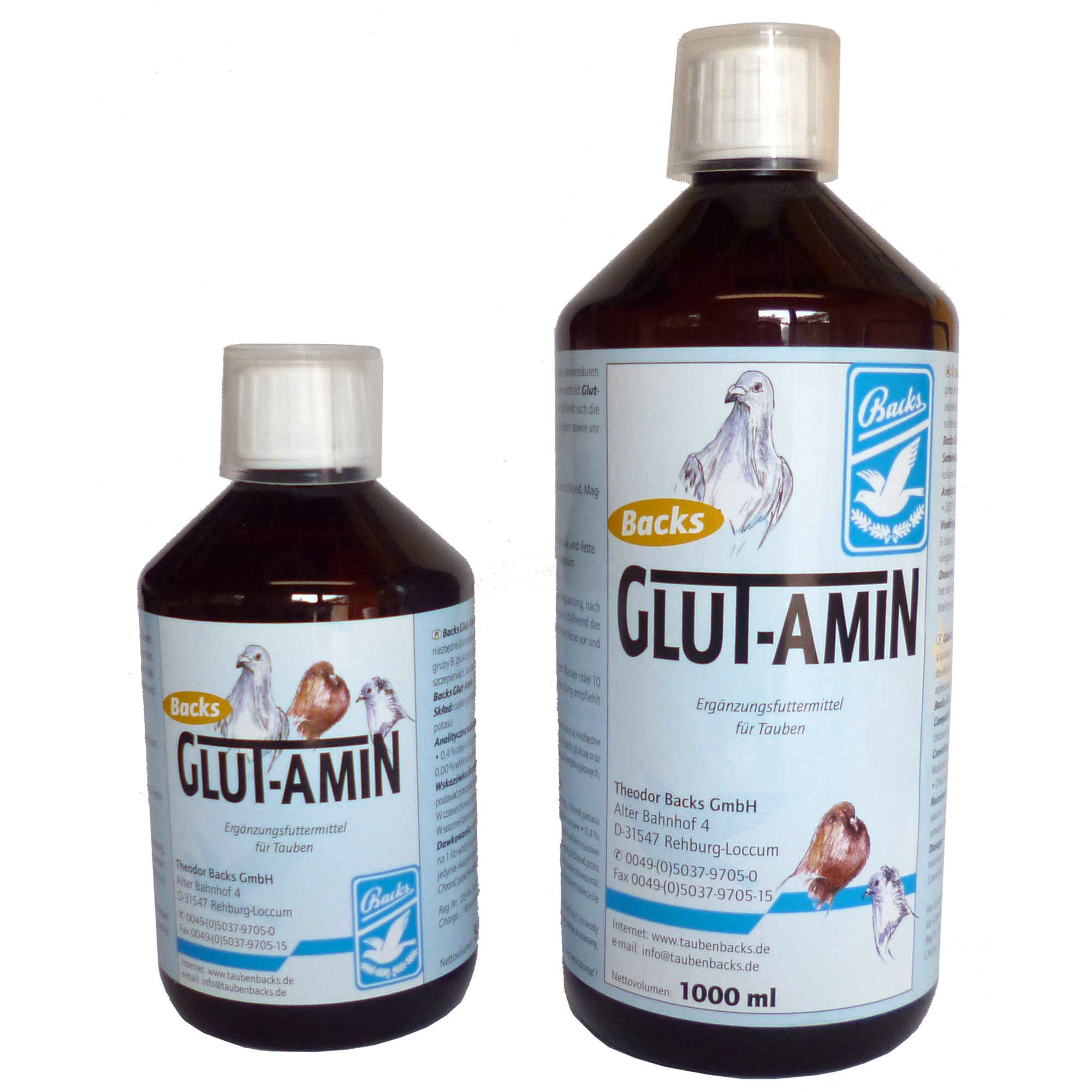 Enthält alle notwendigen Aminosäuren. Aminosäuren sind für das Wachstum und die Mauser unverzichtbar. Außerdem enthält Glut-Amin B-Vitamine, Traubenzucker sowie Elektrolyte. Damit empfiehlt sich die Verfütterung von Glut-Amin nach Antibiotikagaben, Impfungen sowie vor und nach Wettflügen.
