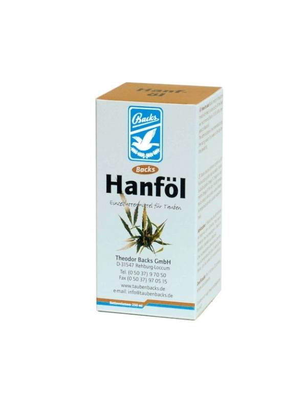 Backs Hanföl enthält ca. 90 % ungesättigte Fettsäuren, darunter Omega 3, Omega 6 und die seltenen Omega 9 Fettsäuren. Durch sein Fettsäurespektrum ist Hanföl gerade während der Reisezeit ein sehr guter Energielieferant für Ihre Tauben.