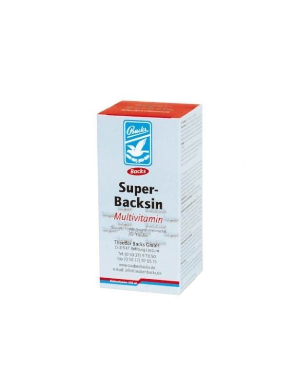 Super-Backsin ist eine für Tauben entwickelte Multivitaminlösung. Super-Backsin sollte immer dann eingesetzt werden, wenn dem Stoffwechsel Ihrer Tauben eine erhöhte Leistung abverlangt wird. Also in der Zucht, der Reise, der Mauser und nach medikamentösen Behandlungen und Impfungen.