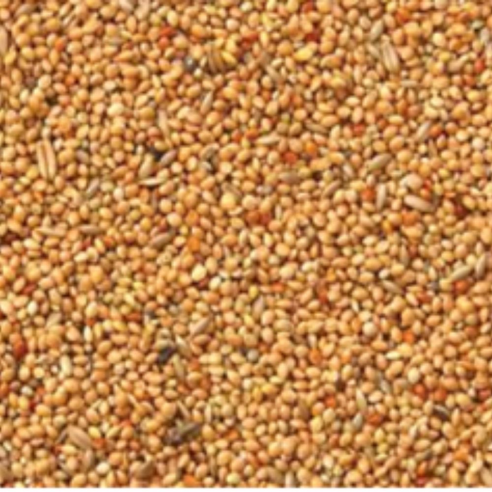 Zusammensetzung: Hirse gelb 85%, Hirse rot 5%, Kanariensaat 5%, Hirse weiß 2,5%, Haferkerne 2,5%