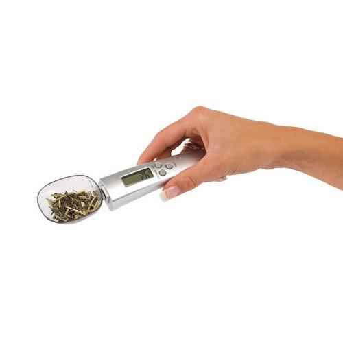 ideal zum Wiegen von Pulver,medikament,Tee,Flüssigkeiten oder Gewürzen - für feine Dosierungen in kleinsten Messeinheiten ab 0,1 g bis maximal 300 g mit Hold- und Tarafunktion, Anschalteknopf und Abschaltautomatik, Aufhängung im Griff. Sie benötigen 2 x AAA Batterien (nicht enthalten). Digitale Löffelwaage in der Farbe silber.