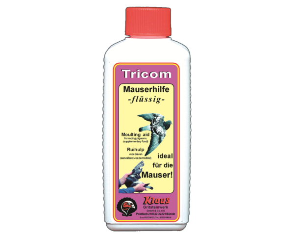 Tricom® Mauserhilfe (flüssig) ist in seiner hervorragenden Zusammensetzung effektiv und ergiebig. Tricom Mauserhilfe (flüssig) kann über das Trinkwasser oder das Futter verabreicht werden. Bei regelmäßiger Zufütterung reduzieren sich wachstumsbedingte Gefiederfehler. Tricom Mauserhilfe flüssig enthält einen hohen Anteil an Methionin, Lysin, verfügbarem Kalzium und zahlreiche Vitamine. Ein ordentliches Gefieder ist die Voraussetzung für ausgezeichnete Flugleistungen in der kommenden Sais