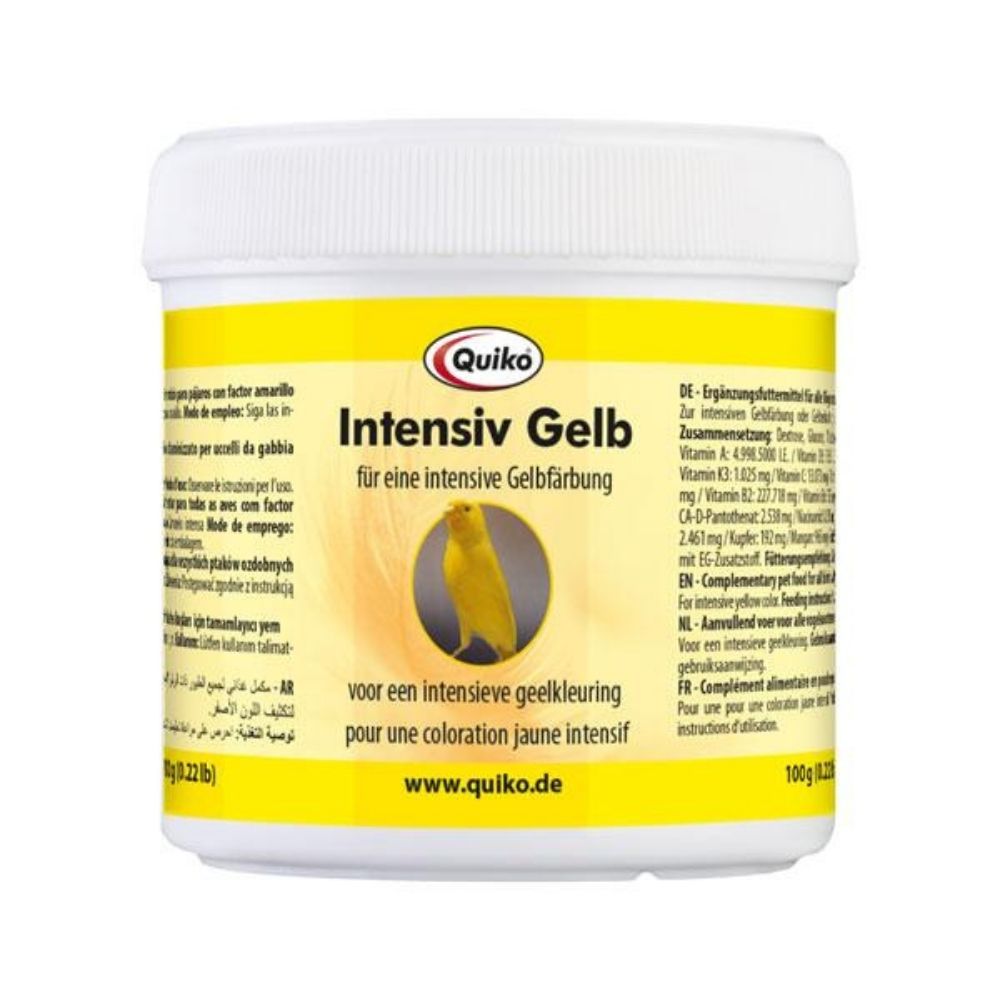 Quiko Intensiv Gelb ist ein Ergänzungsfutter für Vögel mit Gelbfaktor. Zur intensiven Gelbfärbung und Farbintensivierung des Gefieders von Vögeln mit Gelbfaktor. Intensiv Gelb ist geeignet für Kanarien, Waldvögel usw. es verhindert ein Verblassen des gelben Gefieders. Intensiv Gelb kann über das Trinkwasser oder unter das Aufzuchtfutter gemischt verabreicht werden.