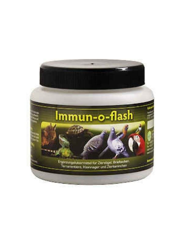 Ein funktionierendes Immunsystem kann auf Reize aus der belebten Umwelt wesentlich effektiver reagieren. Das Immunsystem ist bei Transportstress, Futterumstellungen oder auch körperlichen Belastungen gefordert, die oftmals im Zuchtbereich, aber auch bei Haut- und Schuppenbildung sowie bei Fellwechsel auftreten. Terrarientiere, Kleinnager und Zierkaninchen erhalten als Startgabe zunächst über einen Zeitraum von ca. drei Wochen Immun-o-flash® über das Futter. Nach einer Unterbrechung von ca. drei Wochen wird Immun-o-flash® über einen Zeitraum von ca. einer Woche erneut verabreicht. Diese Anwendungsmöglichkeit kann mehrmals im Jahr wiederholt werden: je größer das Anwendungsintervall umso länger die Anwendungszeit.